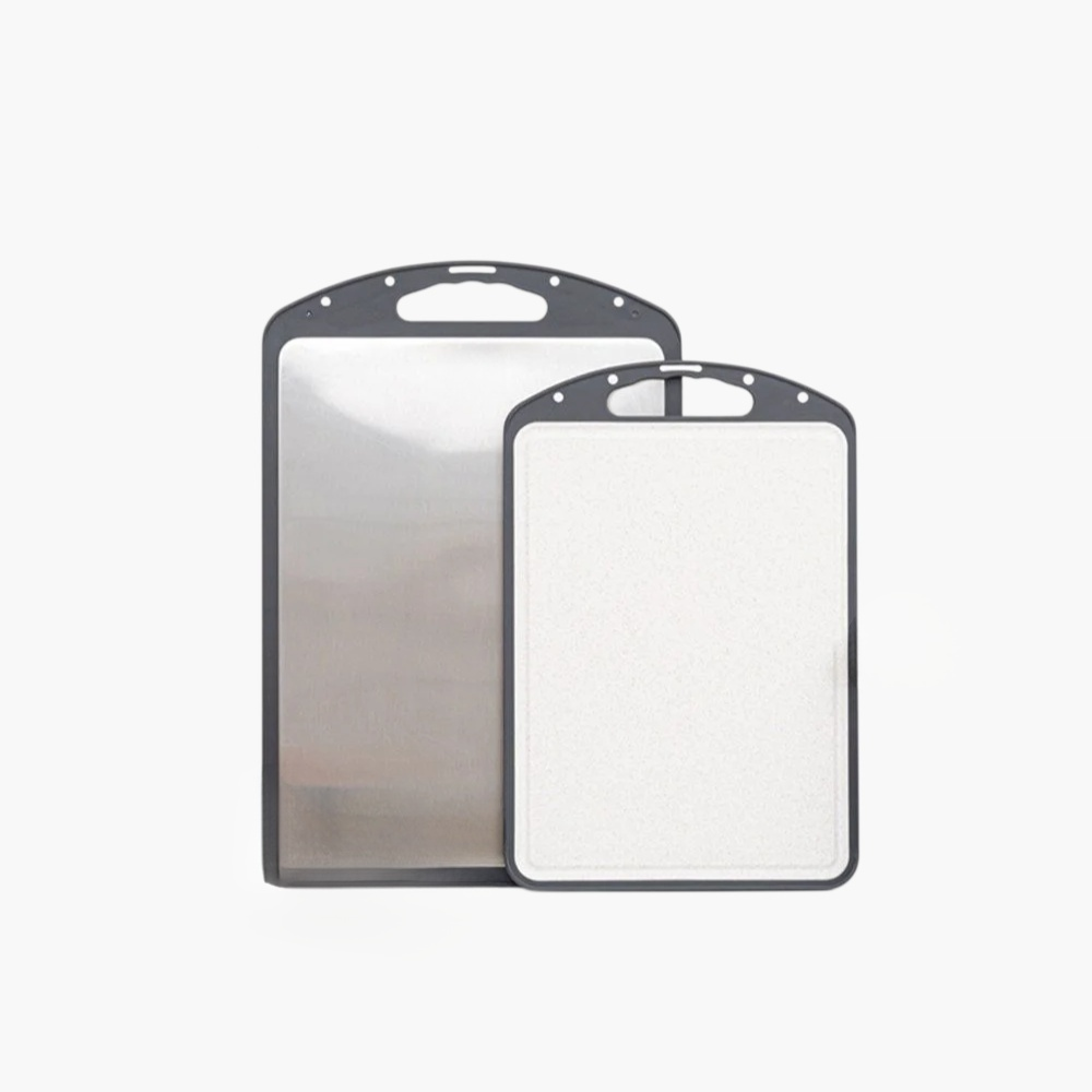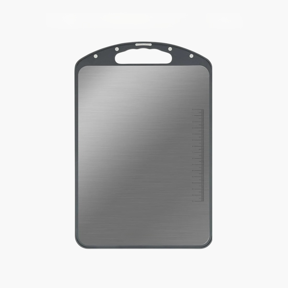 ● 両面使えるデザインで、肉と野菜を分けて衛生的に調理できるステンレス製まな板です。